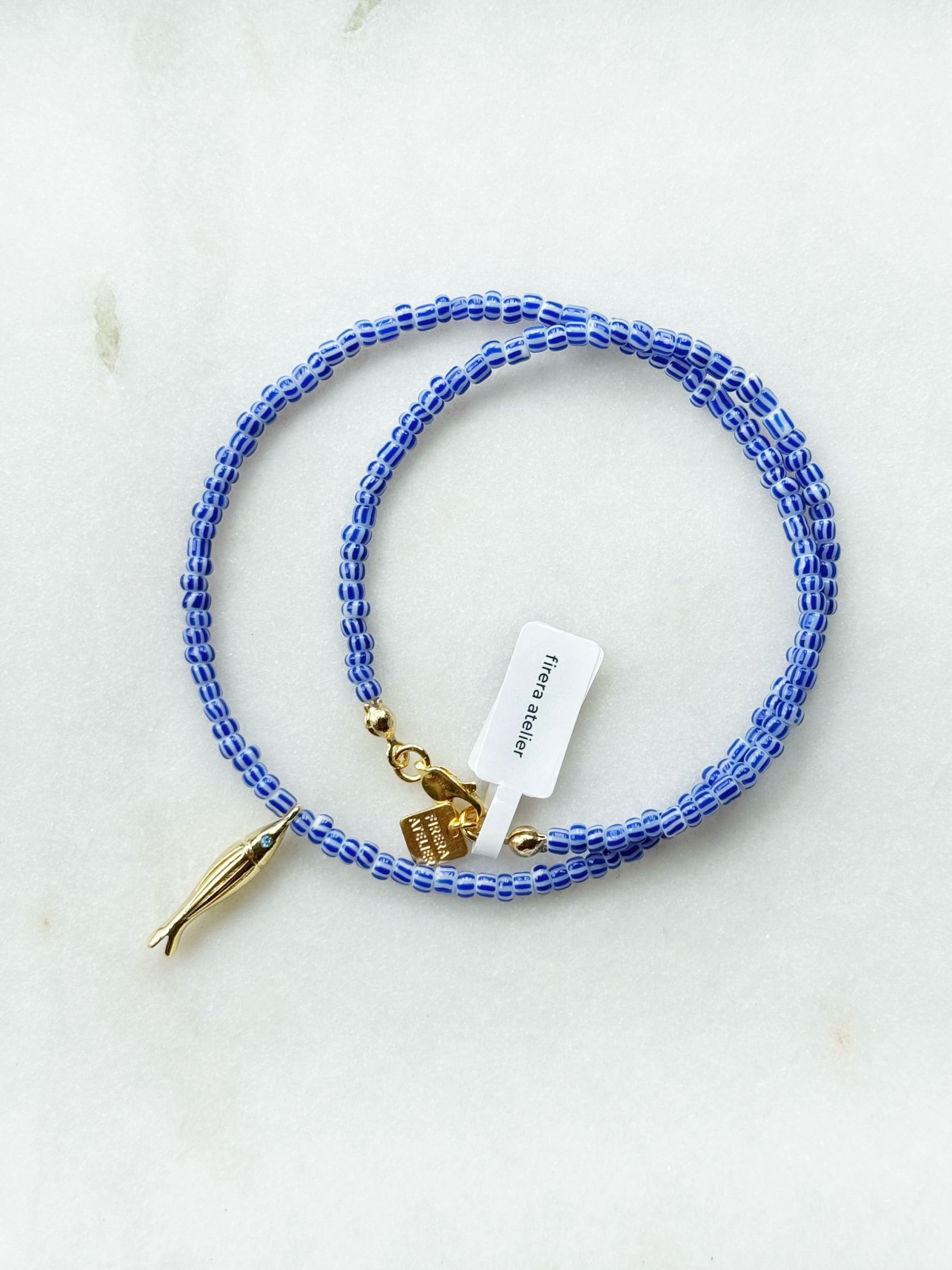 Tasarım Detayları: Cam boncuk, pirinc üzeri altın kaplama detaylarla tamamlanarak tasarlanmıştır. Her parça el yapımı olduğundan, renk ve formunda küçük farklılıklar görülebilir.