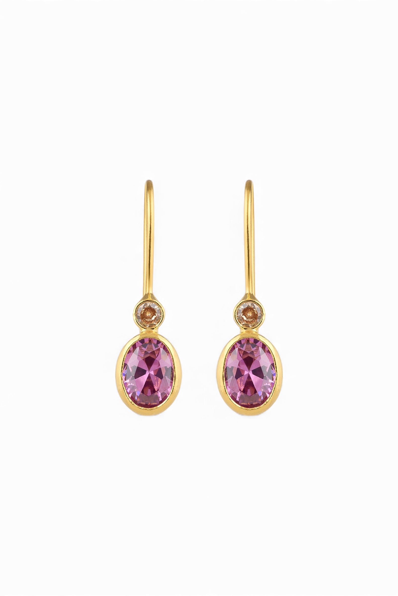 Tasarım ve Taş Detayları: Oval formda pembe zirkon taşlar ve yuvarlak formda şampanya tonlu zirkon taşlar, mikron kaplama bir çerçeve içinde tasarlanmıştır.