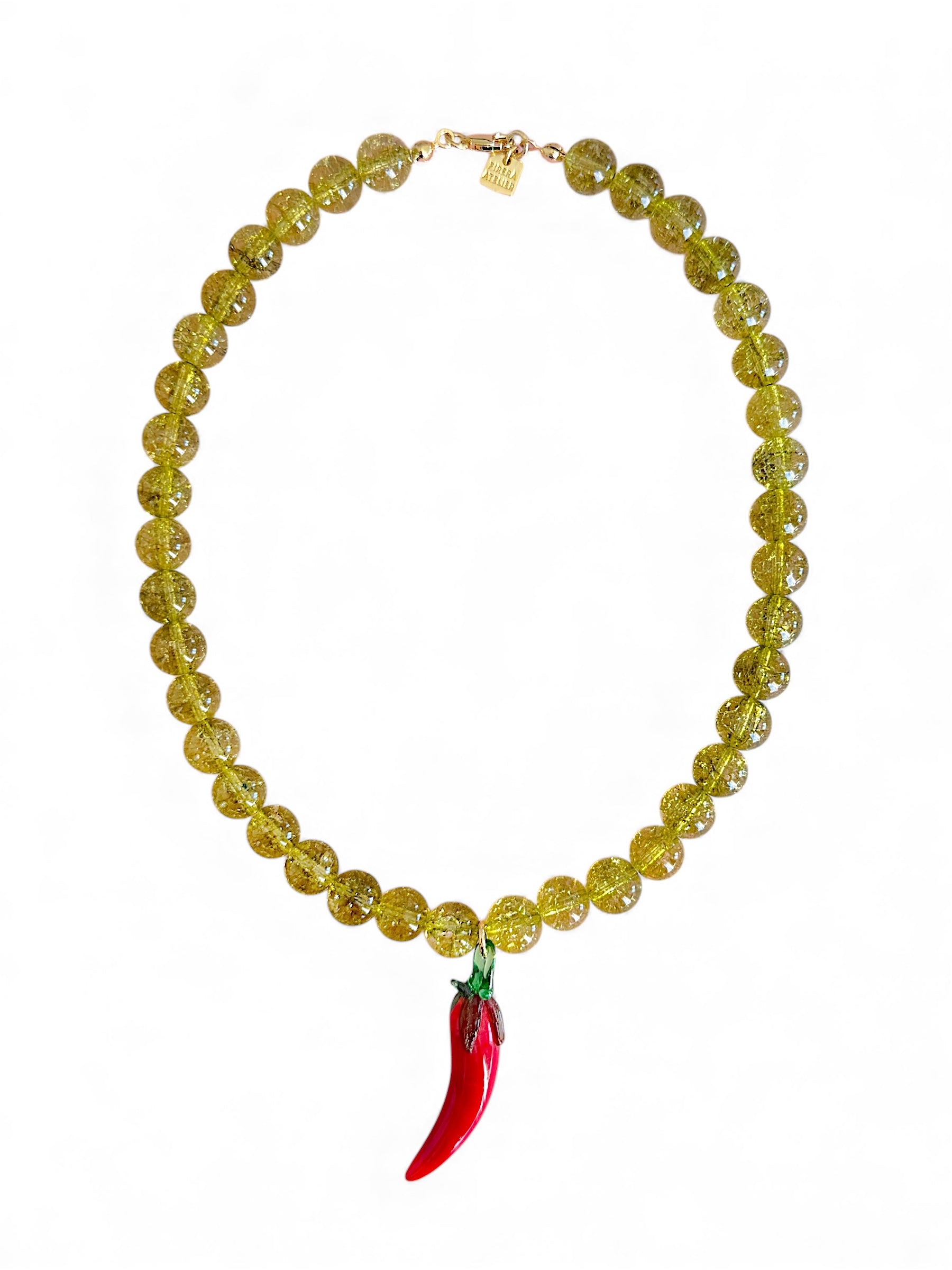 Piccante kolyesindeki kırmızı biber figürü, Akdeniz kültürlerinde ve özellikle İtalyan inanç sistemlerinde kötü enerjilere ve nazara karşı güçlü bir koruyucu sembol olarak kabul edilir. Hem tutkulu hem de koruyucu bir güç barındıran kırmızı biber, cesaretin ve direncin simgesidir. Bu figür, hayatın getirdiği zorluklarla başa çıkma yeteneğini ve içindeki ateşi yansıtır.