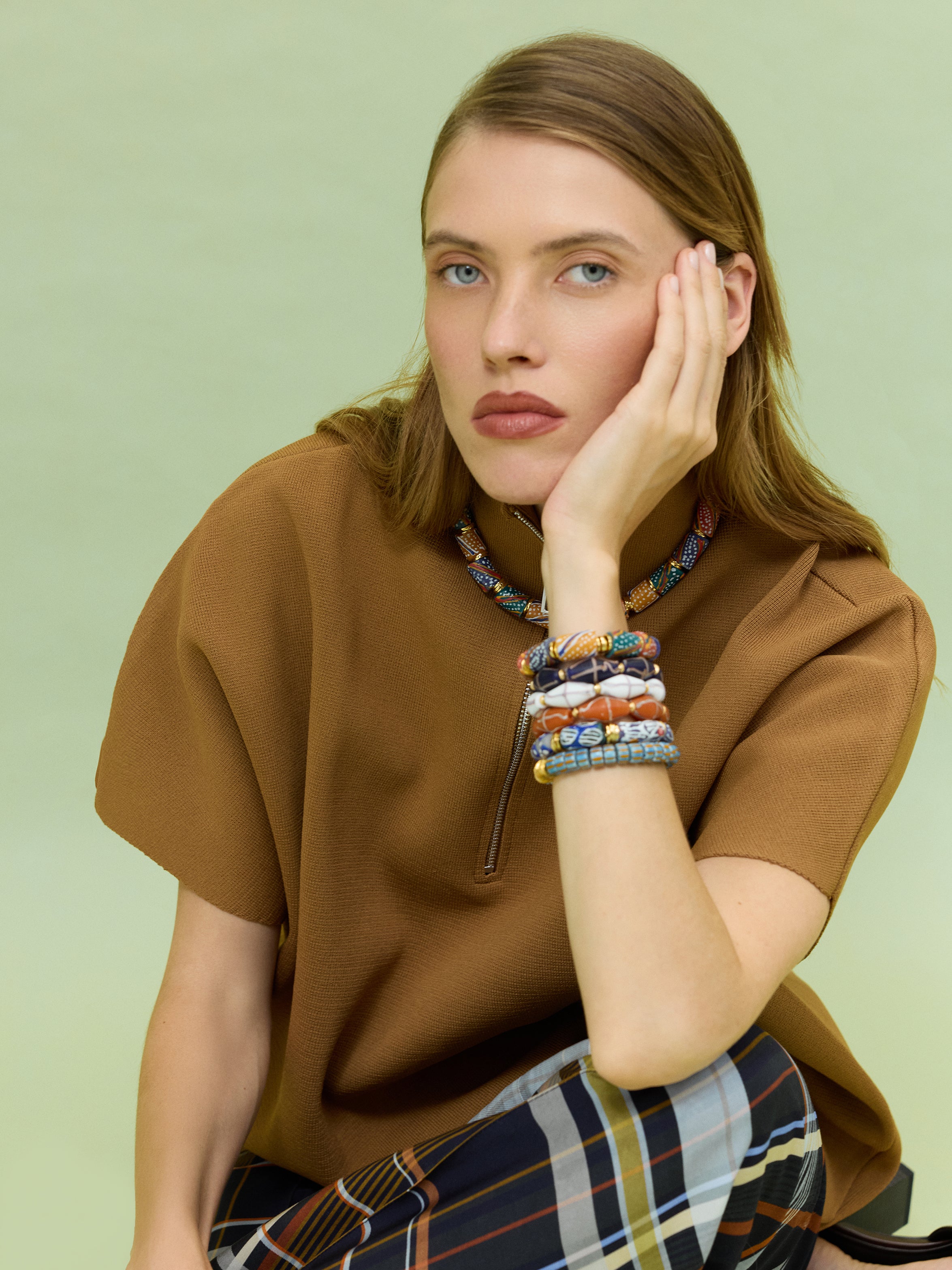 • Malzeme: Krobo boncuk, pirinç ve altın kaplama
