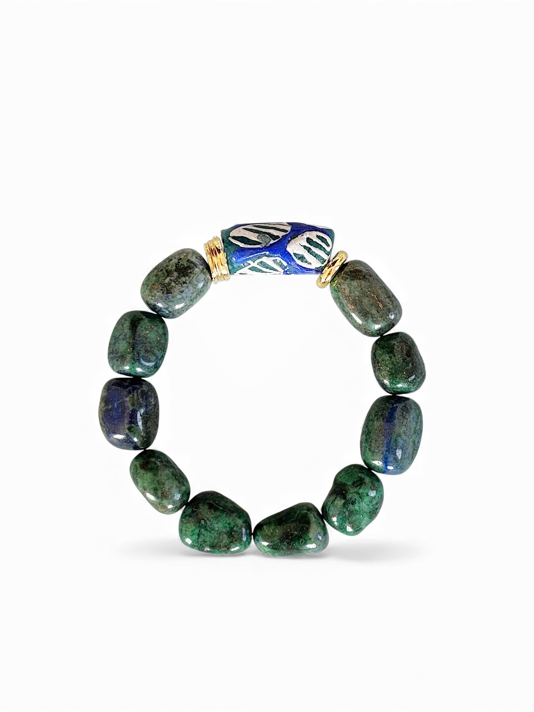 • Malzeme: Azurit doğal taş, krobo boncuk, pirinç ve altın kaplama