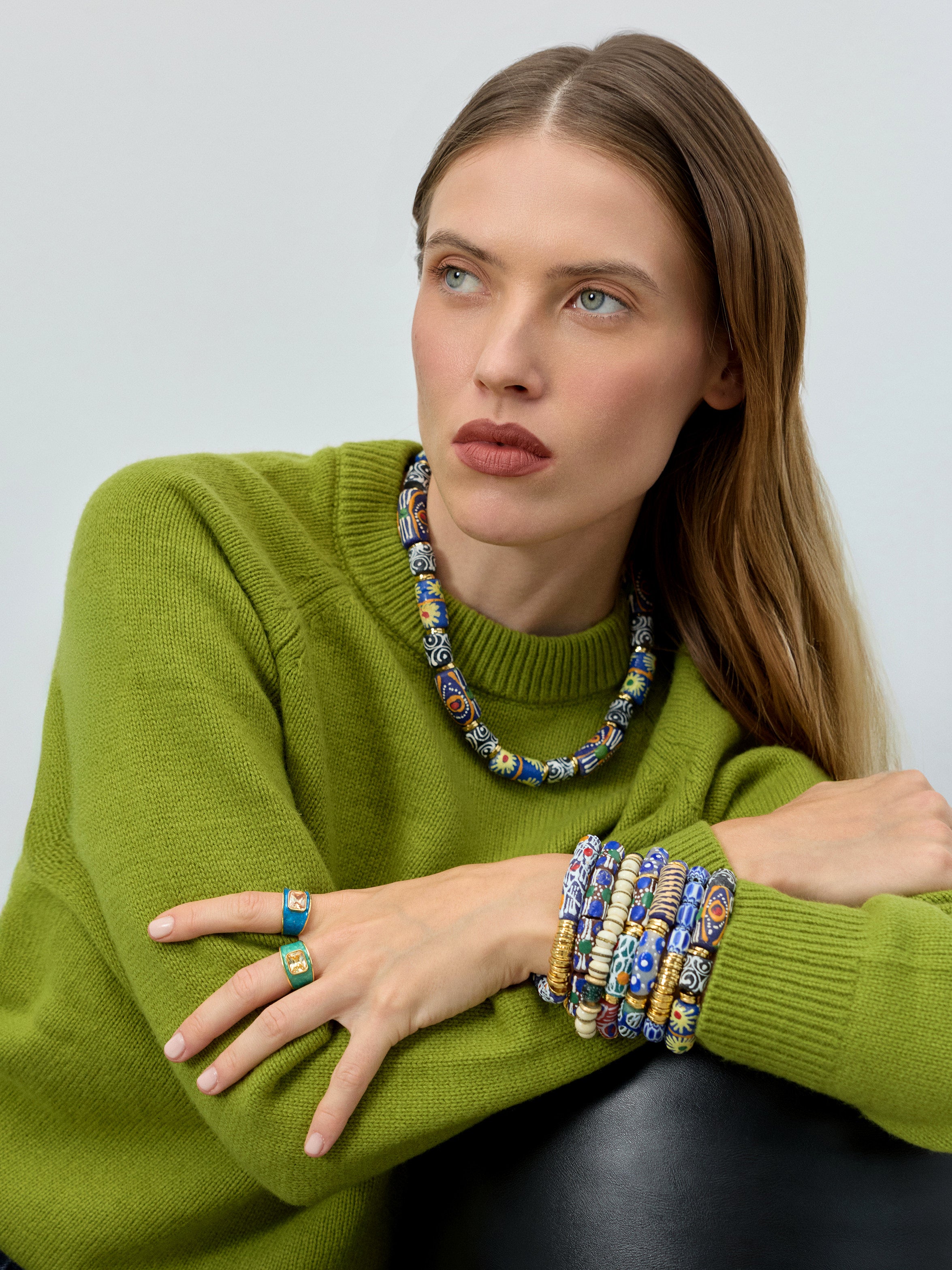 • Malzeme: Krobo boncuk, pirinç ve altın kaplama